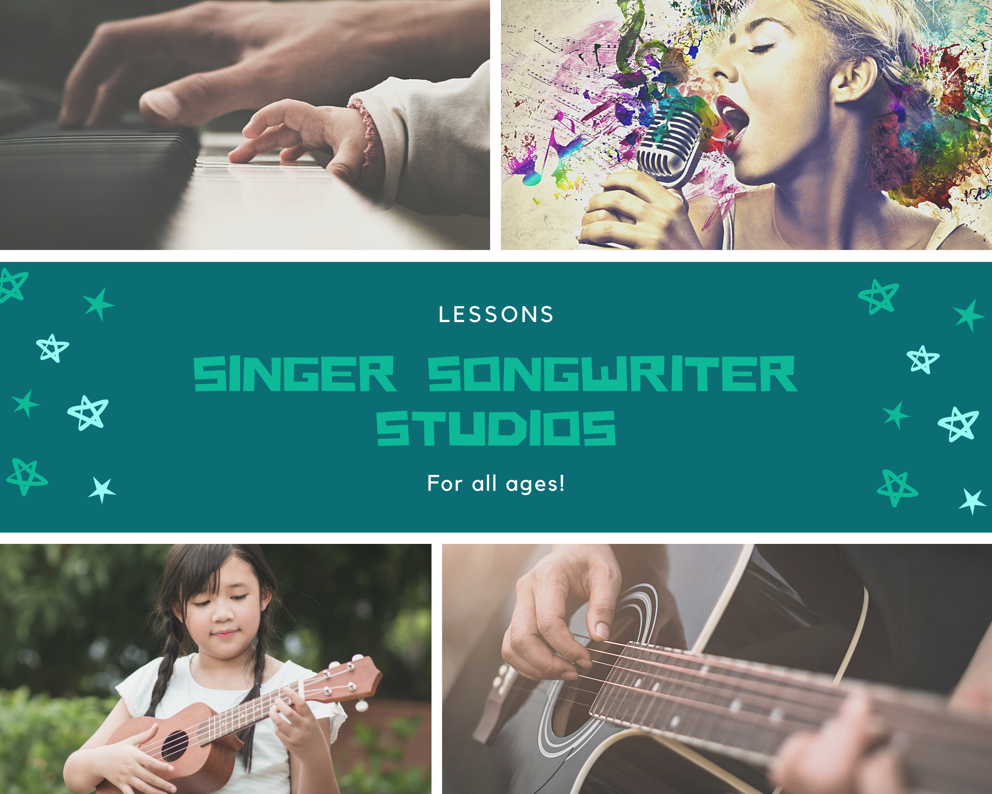 Lessons in voice, piano, guitar, ukulele, & songwriting techniques with options to combine.